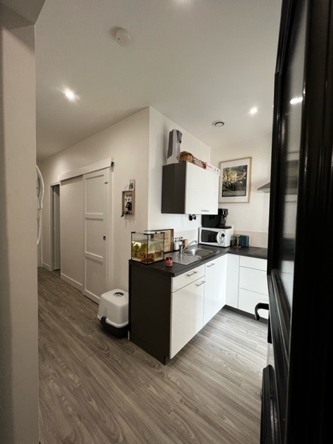 Une entrée, une cuisine aménagée et équipée ouverte sur le séjour (four, hotte, plaque, réfrigérateur), une chambre, une salle d’eau, WC séparé.